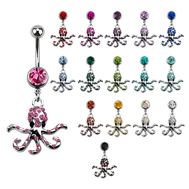 • Jewelled Navel Barbell with Dangling Diamond Cut Out