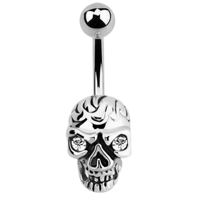 Surgical Steel navel barbell with a gem on the top and bottom ball