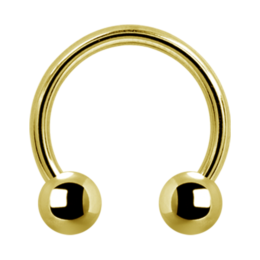 A circular barbell, or horse-shoe shaped barbell, with two externally threaded balls. Item is sold individually.