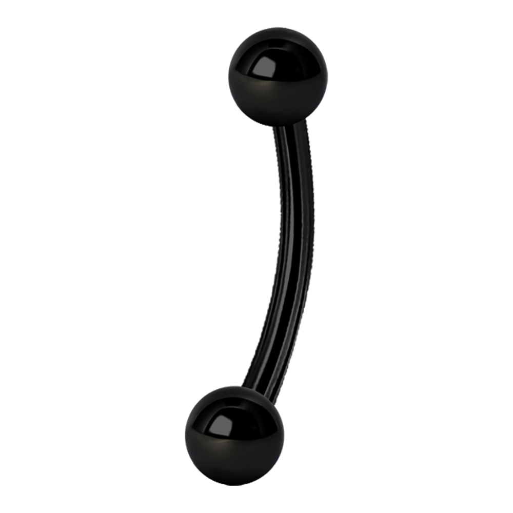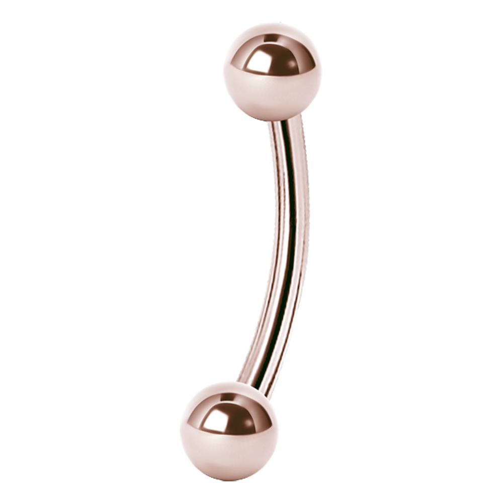 A curved externally threaded micro barbell with a ball screwed onto both ends. This item is sold individually.