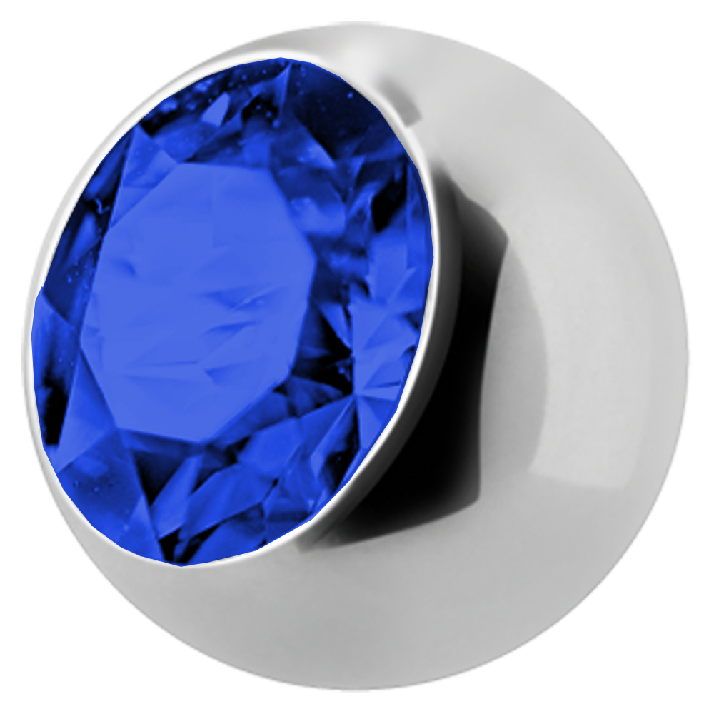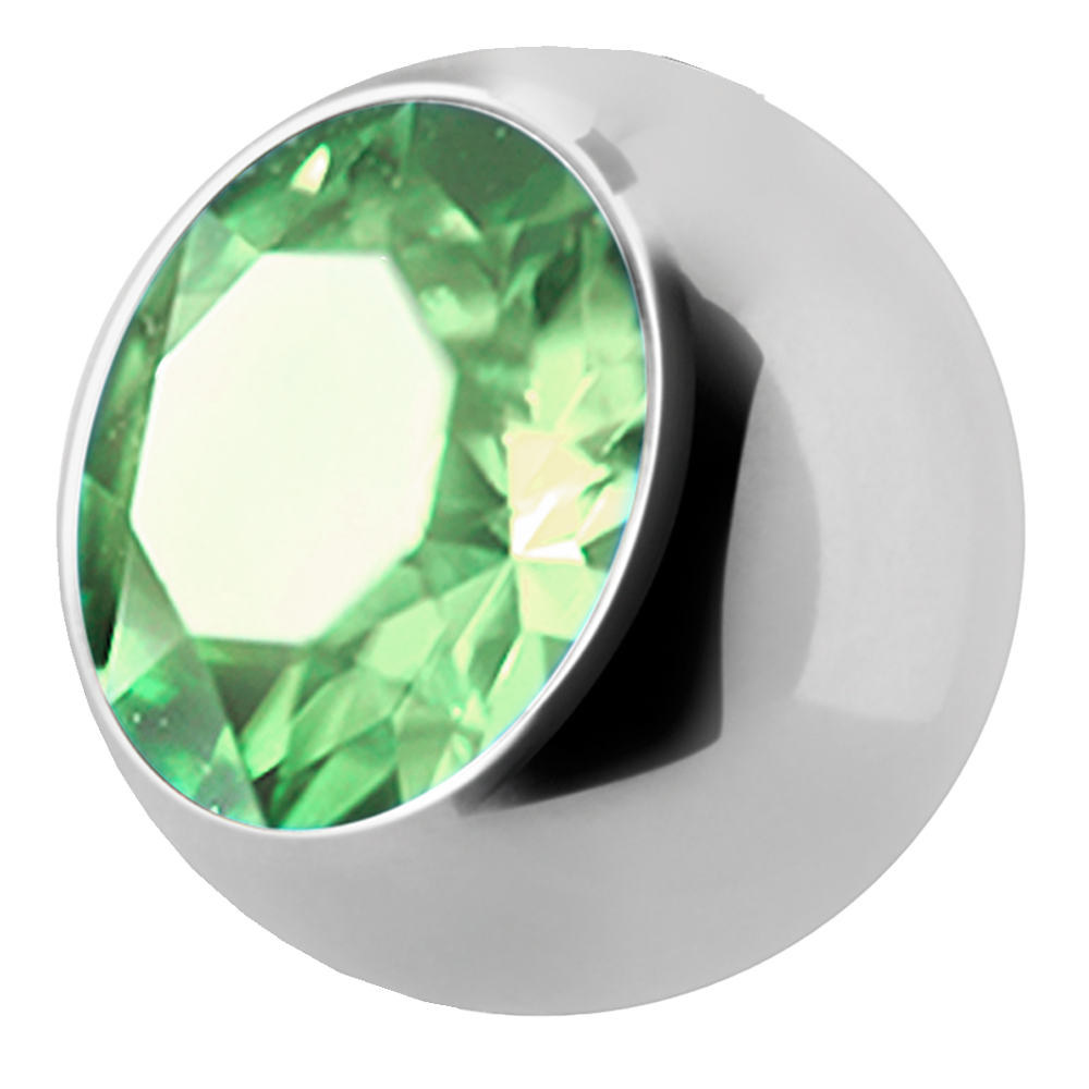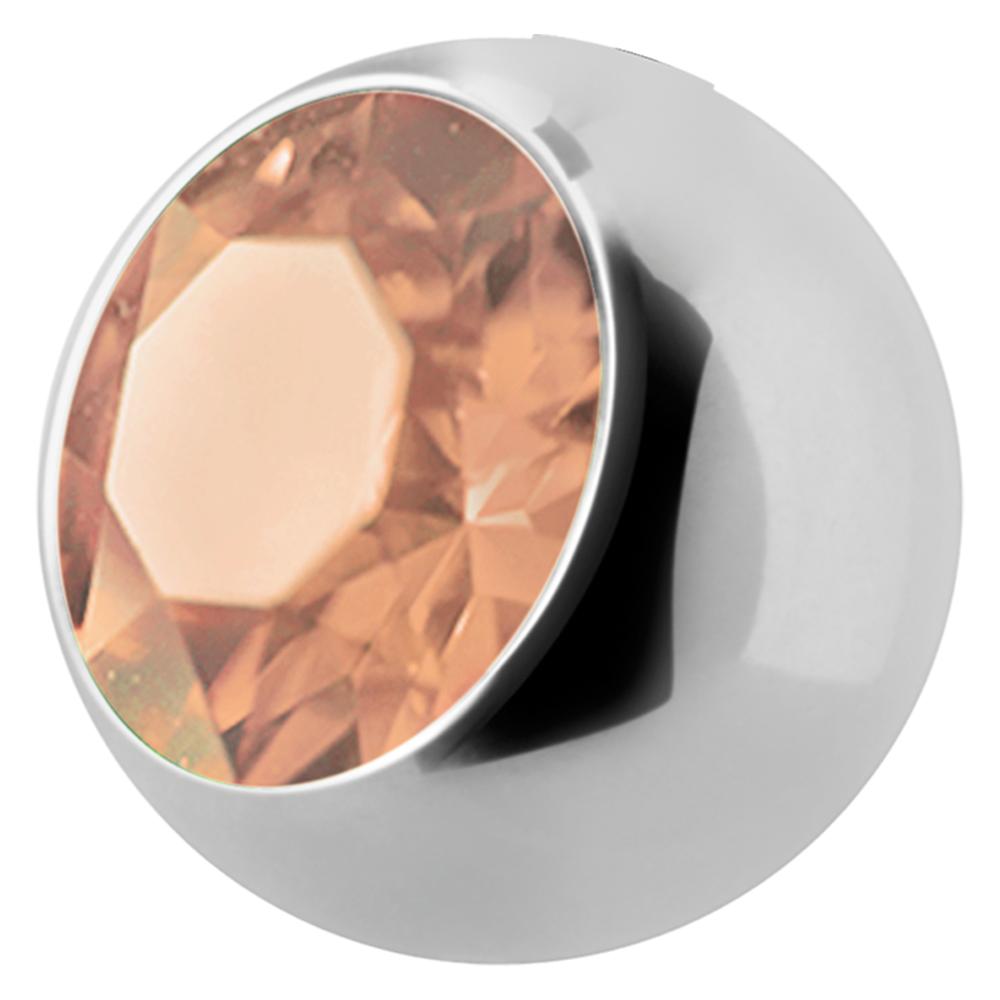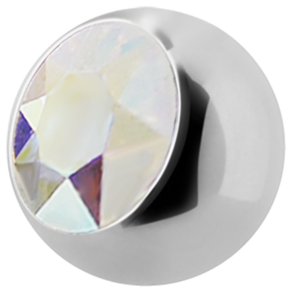 A ball set with a Premium Crystal, with an threaded hole at the back that can be screwed onto a barbell. This attachment is externally threaded and can only fit externally threaded posts. This item is sold individually.