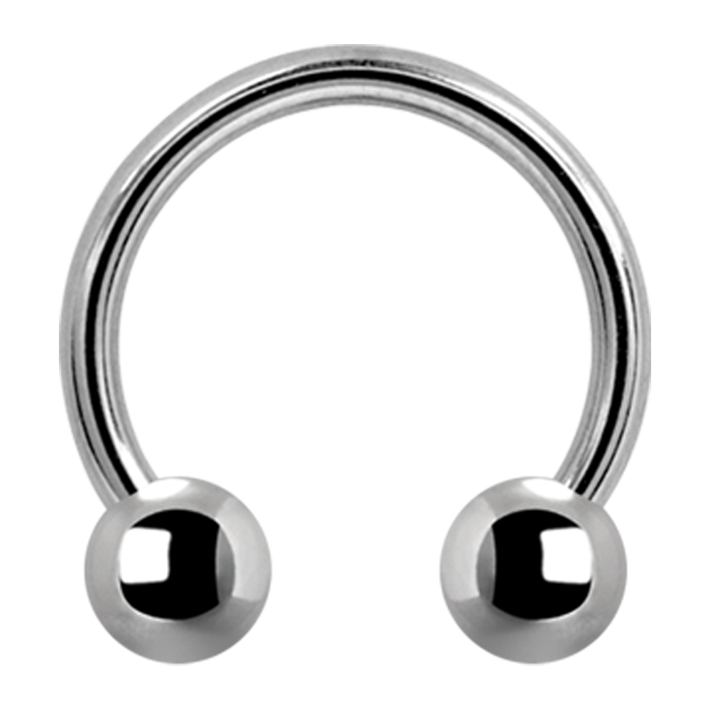 A circular barbell, or horse-shoe shaped barbell, with two externally threaded balls. Item is sold individually.